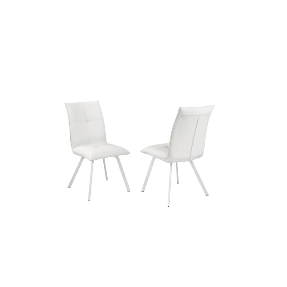 Elevate your dining space with the Alba Dining Chairs, a perfect blend of modern design and everyday comfort. These dining chairs feature a sturdy metal frame with a matte white, sand-textured powder-coated finish that adds a sleek, contemporary touch to any dining room. Upholstered in smooth white PU fabric with matching top stitching, the Alba chairs bring both style and durability to your home.