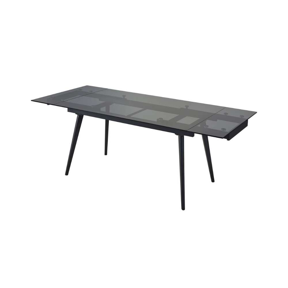 Bring modern style and flexible function to your dining space with the Excitement Dining Table. Designed to impress, this table features a sleek clear tempered glass top paired with a bold black metal base for a contemporary, open look. Built with convenience in mind, it includes two easy side extensions that allow you to expand the table in seconds—perfect for hosting family dinners or entertaining guests. Stylish, durable, and versatile, the Excitement table is made to adapt to everyday dining and special occasions alike.
