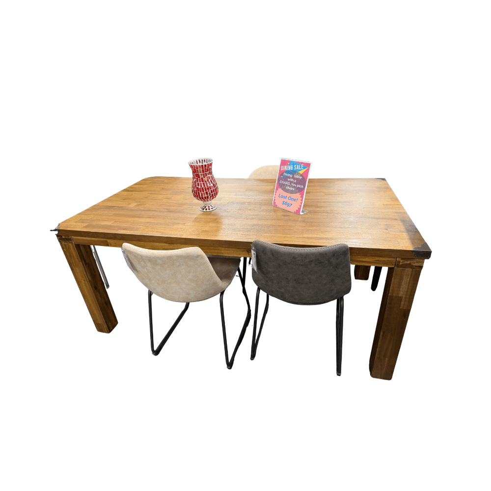 The Hudson Dining Table offers a warm, natural look with a clean, sturdy design suited for everyday dining. Featuring a solid, thick tabletop with a rich wood finish and substantial legs, this table brings a grounded, modern-rustic feel that works well in both contemporary and transitional spaces.