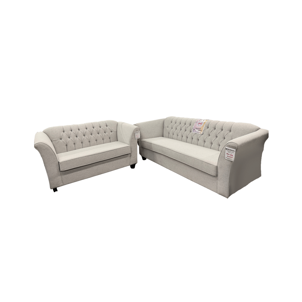 The Kensington Sofa and Loveseat bring classic elegance and everyday comfort together in a timeless design. Featuring a gently curved silhouette with button tufting along the backrest, this set adds a refined look while maintaining a cozy, inviting feel suitable for both traditional and transitional living spaces.